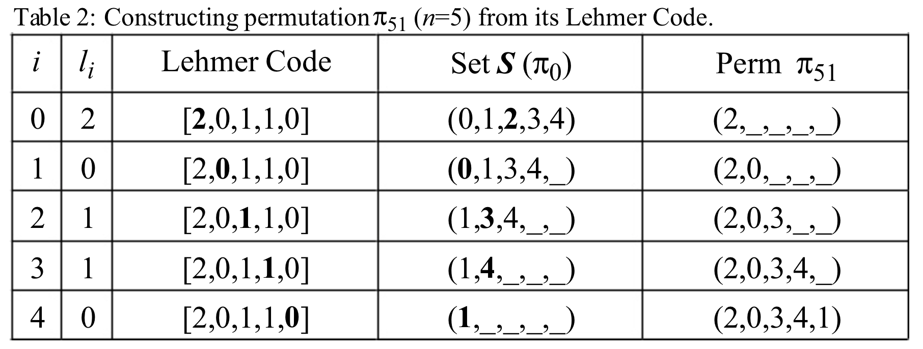 در بخش قبل تقریبا نشان دادیم چگونه از یک جایگشت عدد متناظر آن را بسازیم. مراحل آن به شرح زیر است: