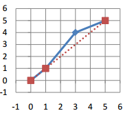 - در هر یک از $N$ خط بعدی دو عدد $x_{i}, y_{i} (-10000 \leq x_{i}, y_{i} \leq 10000)$ آمده است که نشان دهنده مختصات نقطه $p_{i}$ است. توجه کنید که مختصات نقطه ها صعودی است، یعنی $x_{i} < x_{i + 1}$ و $y_{i} < y_{i + 1}$.