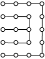 امید و حمید با هم نقطهبازی میکنند. قاعدهی بازی به این صورت است که هر نفر در نوبت خود باید یک نقطه را بهیک نقطهی مجاور آن که قبلاً به آن وصل نشده، متصل کند و هرگاهیک نفر یک مربع $1 \times 1$ را کامل کرد، باید یک حرکت دیگر بهعنوان جایزه انجام دهد (دو نقطه در صورتی مجاورند که فاصلهی آنها یک باشد). امتیاز یک فرد در انتهای بازی برابر تعداد مربعهای $1 \times 1$ است که او کامل کرده است. نوبت حمید است که بازی کند و وضعیت بازی به شکل روبهرو است. در نهایت اگر هر نفر بهترین بازی خود را انجام دهد، بازی با چه نتیجهای تمام میشود؟