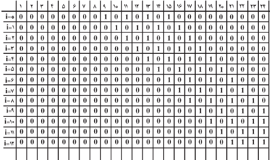 بعد از سوت $i$ام شماره روی کارت‌ها به شکلی در می‌آید که در جدول زیر نمایش داده شده‌اند: