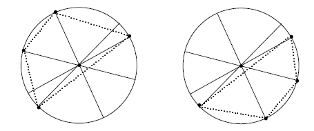 در دایره‌ای $n$ قطر مختلف رسم شده است. هر قطر دو نقطه‌ی انتهایی دارد (نقاط تلاقی قطر با دایره)٬ پس در مجموع $2n$ نقطه انتهایی داریم. یک مجموعه‌ی «متعادل» مجموعه‌ای از $n$ نقطه‌ی انتهایی است به‌گونه‌ای که دقیقاً یکی از دو نقطه‌ی انتهایی هر قطر در این مجموعه باشد٬ و علاوه بر آن٬ اگر یک $n$ضلعی ساده رسم کنیم که رئوس آن٬ نقاط عضو این مجموعه باشند٬ مرکز دایره داخل این $n$ ضلعی قرار گیرد. (منظور از $n$ ضلعی ساده٬ شکلی است با $n$ راس و $n$ ضلع که اضلاع آن فقط در رأس‌ها با یکدیگر برخورد می‌کنند).