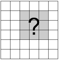 احمد یک زیرجدول $۳ \times ۳$ از جدول $۶ \times ۶$ مقابل را انتخاب کرده است. علی قصد دارد با تعدادی پرسش محل این مربع را کشف کند. او در هر نوبت میتواند بهیکی از خانههای جدول اشاره کند و از احمد بپرسد که آیا این خانه در مربع مورد نظر او قرار دارد یا خیر. کمترین تعداد پرسشهای لازم برای آن که علی بتواند مکان مربع احمد را کشف کند چند تاست؟ برای اثبات ادعای خود٬ باید یک روش ارائه دهید و نیز نشان دهید با کمتر از این تعداد سوال نمیتوان همیشه به جواب رسید.