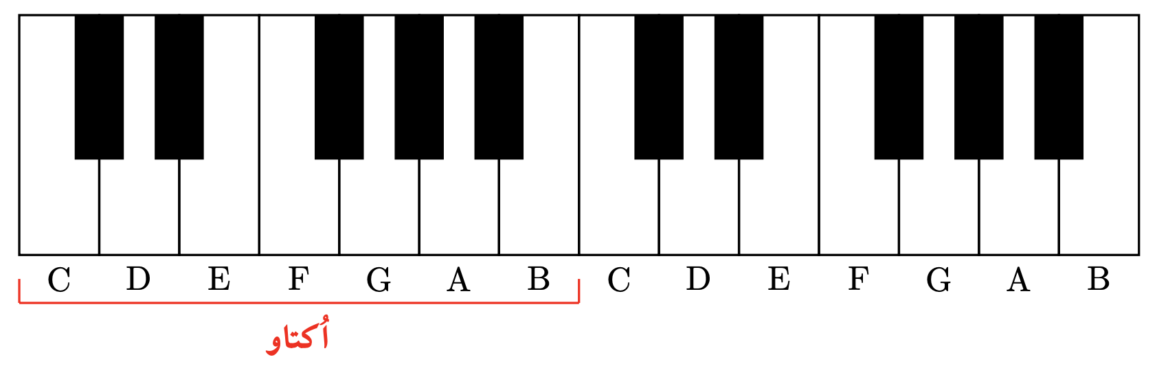 صفحه کلید پیانو از هفت اُکتاو با چینشی یکسان تشکیل می‌شود که کنار هم قرار می‌گیرند. هر اکتاو از دوازده کلید سیاه و سفید تشکیل می‌شود که در چینش استاندارد، این ترکیب از هفت کلید سفید و پنج کلید سیاه تشکیل شده است. در شکل زیر می‌توانید چینش دو اکتاو متوالی در صفحه کلید اصلی پیانو را ببینید: