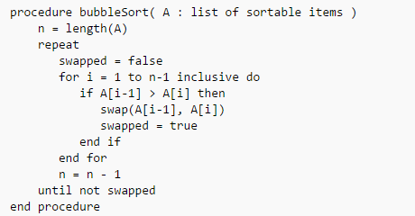 در شبه کد بالا هر بار که حلقه تمام میشود بزرگترین عنصر به آخر آرایه میرسد و در حلقههای بعدی وقتی به این خانه میرسیم جابهجایی صورت نمیگیرد.