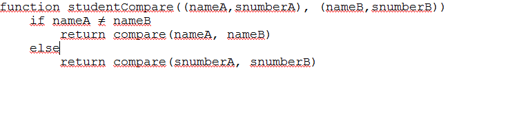مثال: با استفاده از یک الگوریتم مقایسه‌ای می‌توان لیستی از دوتایی‌های شامل نام و شماره‌ی دانشجویی دانشجویان را ابتدا بر اساس نام ودر صورت برابری بر اساس شماره‌ی دانشجویی مرتب کرد: