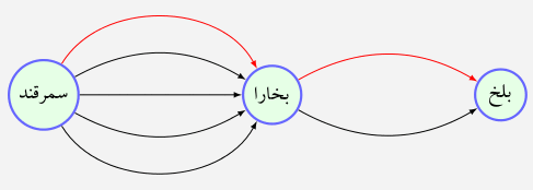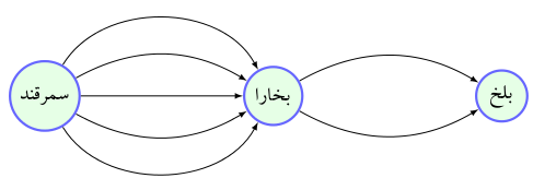 مثال: راه‌های ارتباطی بین سه شهر سمرقند، بخارا و بلخ به صورت زیر است: به چند روش با این راه‌های ارتباطی می‌توان از بخارا به بلخ رفت؟