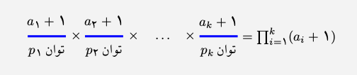 مثال: فرض کنید تجزیه‌ی عدد طبیعی $n$ به عوامل اول، به صورت $n=p_1^{a_1}\times{}p_2^{a_2}\times{}…\times{}p_k^{a_k}$ باشد. ثابت کنید تعداد مقسوم‌علیه‌های مثبت $n$ برابر $(a_1+1)(a_2+1)…(a_k+1)$ است.