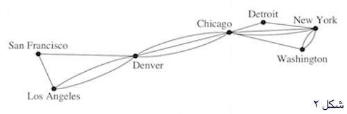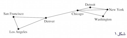 حال فرض کنید یک شبکه کامپیوتری از مراکز داده و پیوندهای ارتباطی بین آن ها داریم. می‌توانیم برای نشان دادن این شبکه‌ی کامپیوتری به جای هر مرکز داده از نقطه و به جای هر پیوند ارتباطی از یک خط استفاده کنیم.(شکل ۱) این شبکه می‌تواند به وسیله‌ی یک گراف هم مدل شود که در آن گراف هر رأس، نمایان گر یک مرکز داده و هر یال نشان دهنده‌ی یک پیوند ارتباطی باشد. در کل می‌توانیم یک گراف را با استفاده از نقطه ها و خط(خم)ها به تصویر بکشیم که در آن یال ها با استفاده از اتصال نقاط شکل می‌گیرند.
