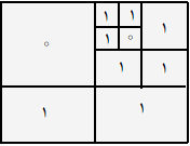 اگر کلیهی درایههای $M$ صفر باشد، $S=0$ و اگر کلیهی درایههای $M$ یک باشد، $S=1$. در غیر اینصورت ماتریس را به چهار ماتریس مساوی $M_3$، $M_2$، $M_1$ و $M_4$ (مطابق ماتریس بالا از شکل روبهرو) تقسیم میکنیم. رشتهی $S_i$($i=1,2, 3, 4$) متناظر با ماتریس $M_i$ را بهدست میآوریم. سپس $S=2S_1S_2S_3S_4$. برای مثال رشتهی متناظر ماتریس پایین از شکل روبهرو ۲۱۰۰۱ است.