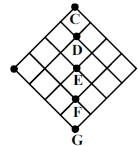 نقاط تقاطع دو متحرک یکی از نقاط $F،E،D،C$ و $G$ از شکل مقابل میباشد که احتمال ملاقات آن دو نفر در هر یک از نقاط مورد اشاره به شکل زیر میباشد:
