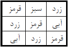 ۹ لامپ در سه ردیف سهتایی قرار دارند. آنها را با رنگهای قرمز، سبز، آبی، و زرد رنگ میکنیم. میدانیم: