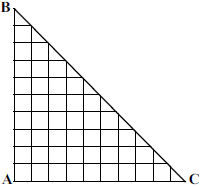 فردی از محل $A$ میخواهد با حرکتهای افقی و عمودی به نقطهای از خیابان اصلی شهر برسد (ضلع ($BC$ برسد بهطوری که مسیری که طی میکند کوتاهترین مسیر باشد و از ابتدای شروع حرکت تا انتها دقیقاً در ۳ مکان تغییر جهت بدهد. (ضلعهای $AB$ و $AC$ به ۱۰ قسمت مساوی تقسیم شدهاند(. وی به چند طریق میتواند مسیر خود را انتخاب کند؟