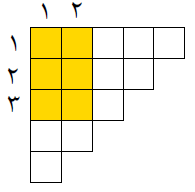 پشت هر یک از خانه‌های جدول روبرو یک عدد نوشته شده است. این اعداد دیده نمی‌شوند. می‌خواهیم با کم‌ترین تعداد پرسش مجموع همه‌ی اعداد این جدول را بیابیم. در هر پرسش یک خانه‌ی $x$ را مشخص می‌کنیم. در پاسخ٬ مجموع اعداد موجود در مستطیلی که خانه‌ی (۱٫۱)٬ گوشه‌ی بالا و سمت چپ و خانه‌ی $x$ گوشه‌ی پایین و سمت راست آن است گزارش می‌شود. مثلاً مستطیل مربوط به خانه‌ی (۳٫۲) در شکل مقابل نشان داده شده است. کمینه‌ی تعداد پرسش‌های لازم چندتاست؟