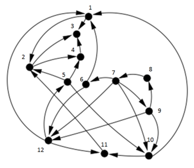 هر سال، هر نهنگی که متوجه شود هیچ نهنگ زندهای را دوست ندارد، خودکشی میکند. شکل روبهرو یک جامعه از نهنگها را نشان میدهد. اگر نهنگ $A$ به $B$ پیکان داشته باشد، یعنی $A$٬ $B$ را دوست دارد.
