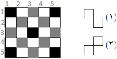به چند طریق میتوان خانههای سفید شکل روبهرو را با ۱۰ تا از قطعههای (۱) و (۲) بهطور کامل پوشاند؟
