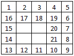 یک جدول $۵ \times ۵$ داریم، که در هر خانهی آن یک تخممرغ قرار دارد. میخواهیم تعدادی از این تخممرغها را برداریم. در هر خانه که قرار داشته باشیم یا از آن رد شویم، میتوانیم تخممرغ آن خانه را برداریم. در ابتدا از یکی از خانههای جدول شروع به حرکت میکنیم. در هر مرحله دقیقاً یک حرکت انجام میدهیم و در هر حرکت بهیکی از خانههای مجاور( دارای ضلع مشترک با خانهی فعلی) میرویم. اگر در مرحلهای جهت حرکت ما تغییر کند (از افقی به عمودی یا از عمودی به افقی)، باید ۱ تومان جریمه بدهیم. اگر ما ۵ تومان پول داشته باشیم، حداکثر چند تخممرغ میتوانیم برداریم؟