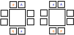۴ زوج وارد رستورانی میشوند. درون رستوران یک میز مربعی وجود دارد که پشت هر ضلع آن ۲ صندلی وجود دارد. این ۴ زوج به چند طریق میتوانند دور این میز بنشینند به طوری که٬ هر نفر کنار زوج خود باشد (یعنی با او در یک ضلع بنشیند) یا دقیقاً روبهروی او باشد؟ دقت کنید که میز قابل چرخاندن نیست و هر دو نفری با هم متفاوت هستند.)