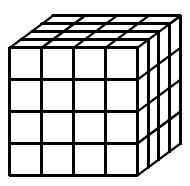 یک کیک به شکل یک مکعب $4 \times 4 \times 4$ داریم. در هر مرحله میتوانیم یک صفحه از فضا (موازی با یکی از وجهّهای کیک)، برای برش انتخاب کنیم. اگر صفحهی برش از قطعه کیکی عبور کند، آن قطعه را به دو قسمت تقسیم میکند. بین هر دو مرحله میتوانیم بخشهای مختلف کیک که از هم جدا شدهاند، هر طور که خواستیم (با انتقال و دوران) در فضا کنار هم قرار دهیم و دوباره عمل برش (مرحلهی بعد) را انجام دهیم.