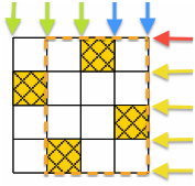 اگر از نگاهی دیگر به مسئله نگاه کنیم میتوانیم برای هر معدن طلا تعداد مزارع مستطیلی شامل آن را بشماریم. به دلیل تقارن شکل کافی است فقط یکی از معادن را بهدست آورده و در ۴ ضرب کنیم.
