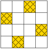 شکل زیر جزیرهای را نشان میدهد که ۱۶ خانه دارد. مساحت هر خانه هم یک واحد است. ۴تا از این خانهها در شکل مشخص شدهاند حاوی معدن طلا هستند.