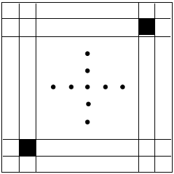 خانه‌های (۲٫۲) و (۹۹٫۹۹) یک جدول $۱۰۰\times ۱۰۰$ سیاه و بقیه خانه‌های آن سفید هستند. این جدول در شکل روبه‌رو نشان داده شده است. بعد از گذشت ۱ ثانیه تمام خانه‌های مجاور یک خانه‌ی سیاه٬ سیاه می‌شوند. دو خانه مجاور هستند اگر و تنها اگر یک ضلع مشترک داشته باشند. بعد از چند ثانیه تمام خانه‌های جدول سیاه خواهند شد؟