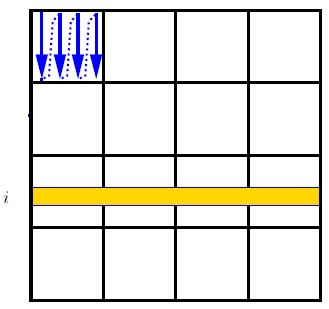 فرض کنید که جدول اولیه را مطابق شکل زیر به ۱۶ جدول هریک به اندازهی $۴\times ۴$ تقسیم میکنیم. اگر سکههای موجود در هریک از این جدولهای کوچکتر $۴\times ۴$ را (مستقل از بقیهی جدولها) مطابق مسئلهی قبل درون خود آن جدولها مرتب کنیم٬ حال در یک سطر دلخواه٬ حداکثر چند سکه ممکن است وجود داشته باشد که عدد نوشته شده بر روی آنها برابر باشد؟