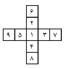 میﺑﯿﻨﯿﻢ ﮐﻪ در شکل ﻧﻬﺎﯾﯽ ﺗﻤﺎمی اﻋﺪاد ﻓﺮد یک رقمی در ﺳﻄﺮ و اﻋﺪاد زوج (ﺑﻪ اﻧﻀﻤﺎم ﻋﺪد یک در ﻣﺮﮐﺰ) در ﺳﺘﻮن ﻫﺴﺘﻨﺪ.