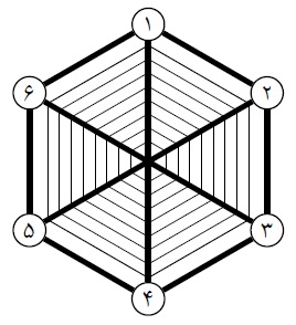 شش عنکبوت با شماره‌های ۱ تا ۶ روی تار عنکبوتی به شکل رو برو زندگی میکنند. هر عنکبوت دقیقا با سه عنکبوت دیگر همسایه است. برای مثال عنکبوت ۱ با عنکبوت‌های ۲و ۴و ۶ همسایه است. در ابتدای روز هر عنکبوت روی در خانه اش، شماره‌اش را می‌نویسد. سپس در هر ساعت هر کدام از عنکبوت ها عدد نوشته شده روی در خانه اش را پاک می‌کند و به جای آن مجموع اعداد همسایه هایش را می‌نویسد. مثلا بعد از گذشت یک ساعت روی در خانه‌ی عنکبوت شماره‌ی ۲ عدد ۹ نوشته میشود. پس از گذشت ۴ ساعت، مجموع اعداد نوشته شده روی همه‌ی خانه ها چند است؟