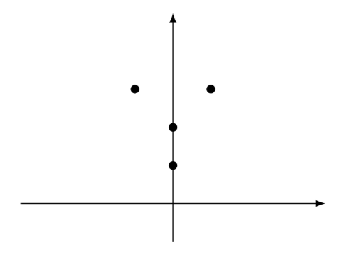 در ابتدا یک مهره روی نقطه‌ی ‌$(0, 0)$ صفحه‌ی مختصات قرار داده شده است. در هر مرحله می‌توان یک مهره با مختصات $(x, y)$ به همراه‌یک عدد طبیعی $n$ انتخاب کرده و پس از برداشتن مهره‌ی مذکور، در هر یک از نقطه‌های $$(x, y+1), (x, y+2), \ldots, (x, y+n-1)$$ و هم‌چنین نقطه‌های $$(x-1, y+n), (x+1, y+n)$$ یک مهره قرار داد. گام‌ها باید طوری انجام شود که در هر لحظه در هر نقطه حداکثر یک مهره باشد. برای مثال در گام نخست با انتخاب تنها مهره‌ی موجود و $n=3$، صفحه به شکل زیر در می‌آید: