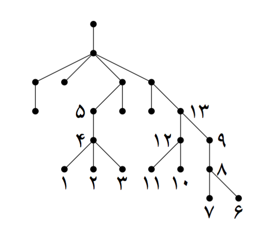 اگر به ترتیب شمارههای زیر، رئوس را حذف کنیم، ۱۳ رأس حذف میشوند: