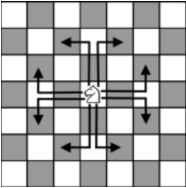 برای کسانی که با شطرنج آشنا نیستند، اگر مهرهی اسب در خانهی مشخص شدهی شکل زیر باشد، در یک گام میتواند بهیکی از هشت خانهی مشخص شده برود: