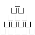 ظرفیت هر لیوان یک لیتر است. با شروع از لحظهی صفر، پارسا به طور پیوسته به میزان یک لیتر بر ثانیه در لیوان بالایی آب میریزد. اگر یک لیوان پر شود، آب از دو طرف آن به طور مساوی سرریز میکند. جاذبه را بسیار زیاد در نظر بگیرید و فرض کنید اگر آب سرریز شود، به سرعت به لیوان پایینی منتقل میشود. فرض کنید $t$، نخستین لحظهای بر حسب ثانیه باشد که بهیکی از لیوانهای ردیف پایین قطرهای از آب برسد. نزدیکترین عدد صحیح به $t$ چیست؟