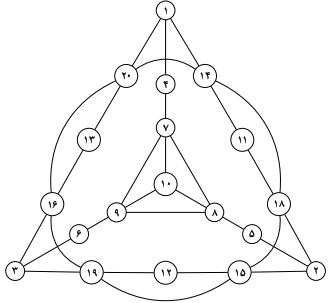 این شبکه مربوط به‌یک دوازده‌وجهی است و کاملاً متقارن است. اگر دو رأسی که از هم دور هستند و فاصله‌ی ۵ دارند را انتخاب کنیم، در ۲ ساعت خبر پخش می‌شود و اگر دو رأس فاصله‌ی کمتری داشته باشند جواب بیش‌تر از ۲ است. در بین گزینه‌ها فقط ۴ و ۱۶ این خاصیت را دارند.