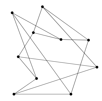 ۱۰ ﺭﺃﺱ ﻣﻄﺎﺑﻖ شکل ﺯﯾﺮ ﺩﺭ ﺻﻔﺤﻪ ﺩﺍﺭﯾﻢ ﮐﻪ ﺗﻌﺪﺍﺩﯼ ﺍﺯ ﺁﻥها ﺑﺎ یک ﭘﺎﺭﻩﺧﻂ ﺑﻪ یکﺩیگر ﻭﺻﻞ ﺷﺪﻩﺍﻧﺪ. ﺩﺭ ﻫﺮ ﻣﺮﺣﻠﻪ میﺗﻮﺍﻧﯿﻢ یک ﺭﺃﺱ ﻭ ﺗﻤﺎﻡ ﭘﺎﺭﻩﺧﻂﻫﺎﯼ ﻣﺘﺼﻞ ﺑﻪ ﺁﻥ ﺭﺍ ﭘﺎﮎ ﮐﺮﺩﻩ، ﺳﭙﺲ ﺁﻥ ﺭﺃﺱ ﺭﺍ ﺩﺭ یک ﻧﻘﻄﻪﯼ خالی ﺍﺯ ﺻﻔﺤﻪ ﺭﺳﻢ ﮐﺮﺩﻩ ﻭ ﺩﻭﺑﺎﺭﻩ ﺑﺎ ﭘﺎﺭﻩﺧﻂ ﺑﻪ ﻫﻤﺎﻥ ﺭﺃﺱهایی ﮐﻪ ﺑﻪ ﺍﯾﻦ ﺭﺃﺱ ﻭﺻﻞ ﺑﻮﺩﻧﺪ، ﻭﺻﻞ ﮐﻨﯿﻢ. ﻣﺮﺍﺣﻞ ﺑﺎﯾﺪ ﺑﻪ ﻧﺤﻮﯼ ﺍﻧﺠﺎﻡ ﺷﻮﻧﺪ ﮐﻪ ﭘﺎﺭﻩﺧﻂ ﺑﯿﻦ ﻫﺮ ﺩﻭ ﺭﺃﺱ، ﺍﺯ ﺭﺃﺱ ﺩیگری ﻋﺒﻮﺭ ﻧﮑﻨﺪ. ﮐﻤﯿﻨﻪﯼ ﺗﻌﺪﺍﺩ ﻣﺮﺍﺣﻞ ﺑﺮﺍﯼ ﺁﻥ ﮐﻪ ﺩﺭ شکل ﻧﻬﺎﯾﯽ ﻫﯿﭻ ﺩﻭ ﭘﺎﺭﻩخطی یک‌دیگر ﺭﺍ ﻗﻄﻊ ﻧﮑﻨﻨﺪ (به جز در نقاط شکل) ﭼﯿﺴﺖ؟