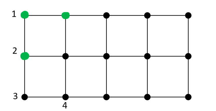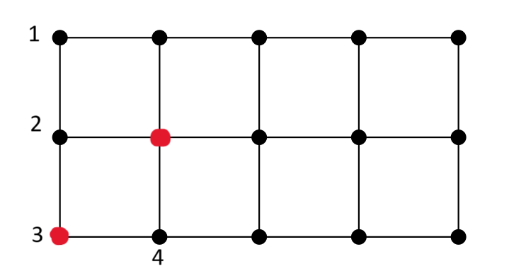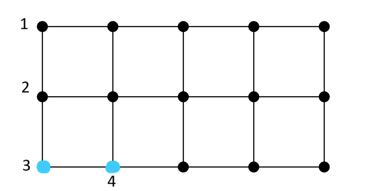 شبکە ی ۵ × ۳ زیر را در نظر بگیرید. به دو نقطه مجاور میگوییم اگر با یک پارە خط مستقیم (بدون عبور از
