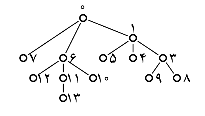 در هر مرحله، شرکتِ ۰ میتواند یکی از شرکتهایی را که با آن ارتباط دارد، حذف کند و با شرکتهایی که پیشتر با شرکتِ حذفشده ارتباط داشتند، ارتباط برقرار کند. بیشترین تعداد ارتباطی که شرکتِ ۰ میتواند بعد از اِعمالِ تعدادی از این مراحل داشته باشد، چند است؟ به عنوان مثال، فرض کنید شرکتِ ۰ که در ابتدا با دو شرکتِ ۱ و ۲ ارتباط دارد، بخواهد شرکتِ ۲ را حذف کند و با شرکتهایی که پیشتر با شرکتِ ۲ ارتباط داشتند، ارتباط بگیرد. پس از این مرحله، ارتباط شرکتها با هم به شکل زیر در میآید و شرکتِ ۰ با سه شرکتِ ۱، ۶ و ۷ ارتباط خواهد داشت.