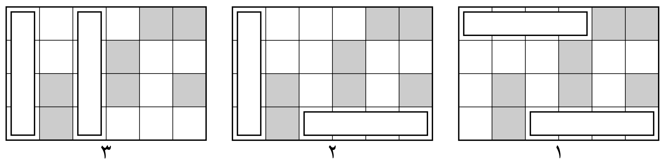 با حالتبندی روی محل قرارگیری کاشیهای ۴ × ۱، تعداد حالتهای مطلوب را میشماریم.