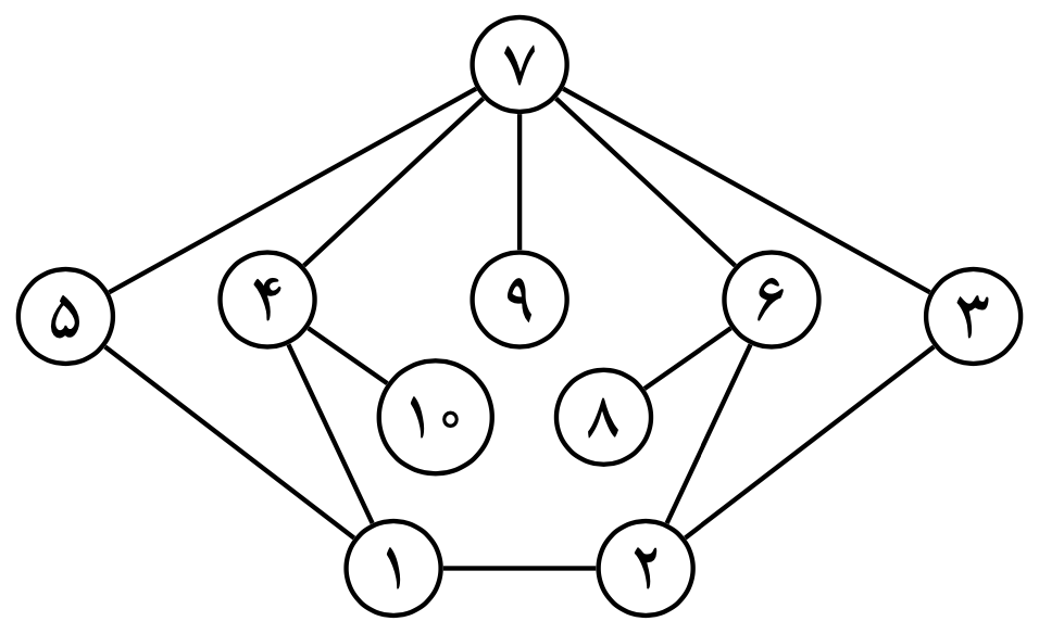 در مدرسه‌ای ۱۰ دانش‌آموز با شماره‌های ۱ تا ۱۰ داریم که روابط دوستی میان آن‌ها به شکل روبرو است. دو نفر با یکدیگر دوست‌اند اگر و تنها اگر شماره‌های متناظر آن‌ها، در شکل به یکدیگر متصل باشند (واضح است که دوستی یک رابطه‌ی دوطرفه است).