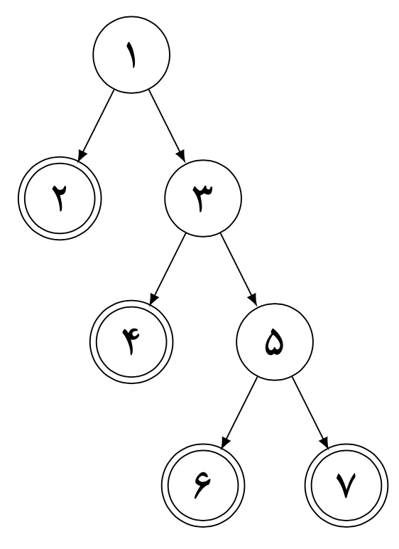 مطابق شکل روبرو بخش‌های لانه را شماره‌گذاری می‌کنیم. برای حل سوال، روی پایانه‌ای که مورچه متوقف خواهد شد حالت‌بندی می‌کنیم.