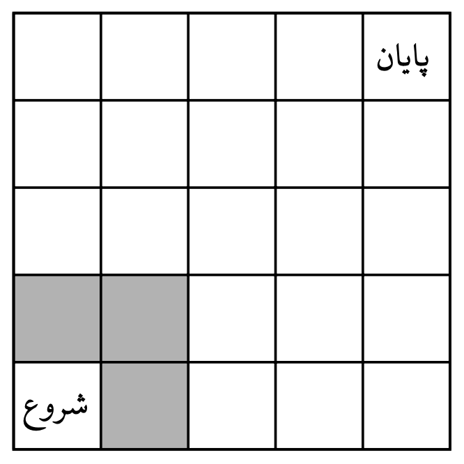 در شکل روبرو، جدولی ۵ × ۵ داریم که هر خانهی آن با یکی از دو رنگ سیاه یا سفید رنگآمیزی شده است.