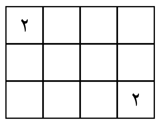 میخواهیم در هر خانهی خالی از جدول مقابل یکی از اعداد ۰، ۱ و ۲ را بنویسیم، به طوری که:
