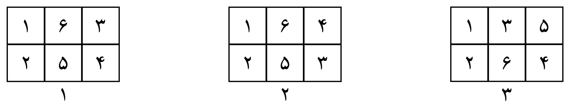 حال، بررسی میکنیم چرا بیشتر از این مقدار امکانپذیر نیست. سه حالت چینش زیر را در نظر بگیرید که در مکان خانههای دارای ۱ و ۲ شمش مشترک هستند.