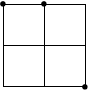 - در یک شبکه $4 \times 4$ یک مجموعه عجیب شامل ۴ نقطه پیدا کنید.