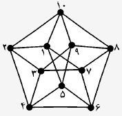 2. می‌توان اعداد ۱ تا ۱۰ را به راس‌های آن نسبت داد به قسمی که راس شماره‌ی $i$ به راس‌های $i-1$ و $i+1$ وصل باشد ($2 \le i \le 9$) و راس ۱ نیز به ۱۰ وصل باشد.