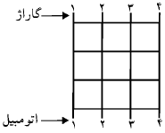 میخواهیم اتومبیلهای ۱ تا ۴ را به گاراژهایی که در شکل نشان داده شده است ببریم به طوری که از هر خیابان حداکثر یک اتومبیل عبور کند.