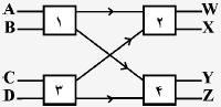۲- $A$ به $B$، $Y$ به $C$، $Z$ به $Z$ و $W$ به $X$ وصل باشد.