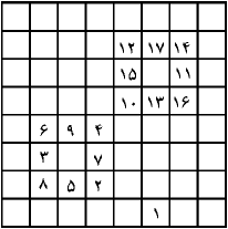 در صفحهی مقابل تعداد ۱۶ مهره در خانههای مشخص شده قرار دارند.