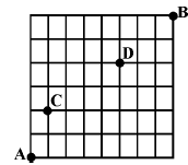 در شکل روبهرو چند مسیر از $A$ به $B$ وجود دارد که از $C$ میگذرد ولی از $D$ نمی گذرد؟(در طول مسیر فقط میتوان به سمت راست یا بالا حرکت کرد.)