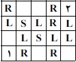 • اگر به خانه‌ای که در آن $R$ نوشته شده است وارد شود٬ باید در حرکت بعد به سمت راست بپیچد.(سمت راست و چپ نسبت به مسیر خودش محاسبه می‌شود.)