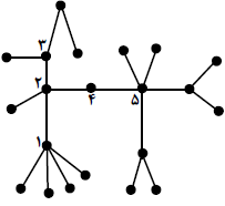 نقشه‌ی چند روستا و راه‌های بین آن‌ها به صورت روبه‌رو داده شده است. قرار است چاه آبی در یکی از این روستا‌ها برای استفاده‌ی مشترک همه‌ی آن‌ها ساخته شود. با توجه به این که طول همه‌ی راه‌ها مساوی است٬ چاه در کدام روستا ساخته شود تا مجموع فواصل طی شده از همه‌ی روستا‌ها به چاه کم‌ترین باشد؟